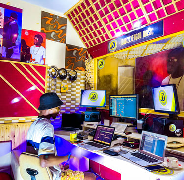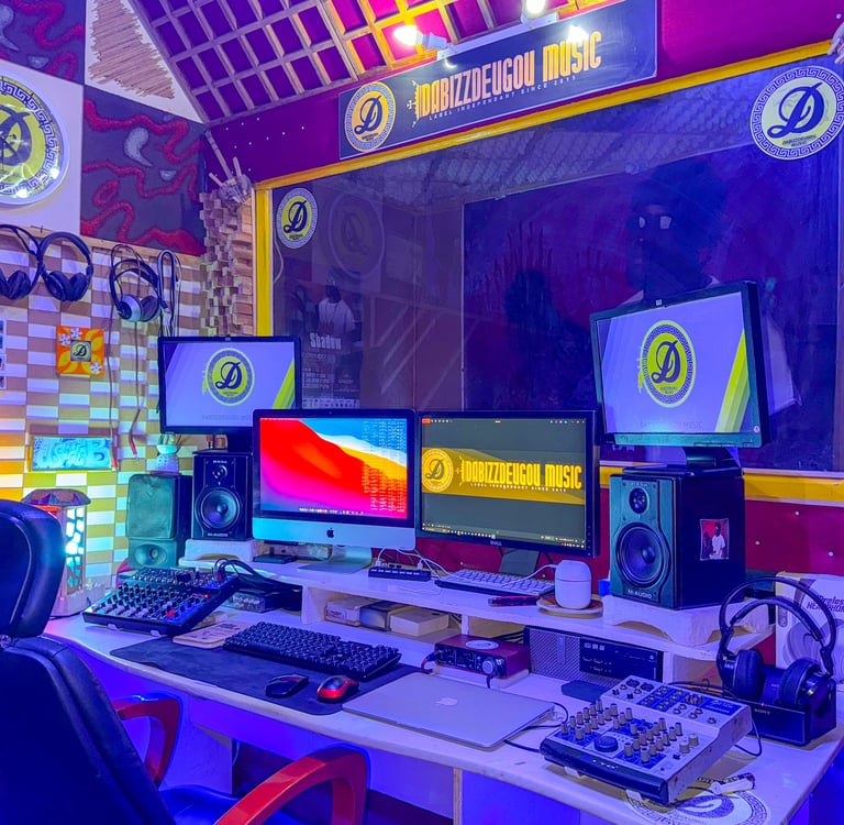 Studio de production musicale professionnel à Dakar. Nous transformons vos idées musicales en chefs-d'œuvre sonores grâce à un équipement de pointe et une ingénierie experte.